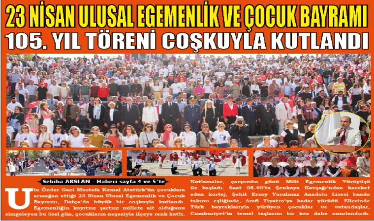 Türkiye Büyük Millet Meclisi’nin açılışının 105. yılı ve çocukların bayramı olan 23 Nisan, Datça’da unutulmaz anlara sahne oldu. Çocukların yüzündeki gülümsemeler, neşeyle dalgalanan bayraklar ve Cumhuriyet’e olan bağlılık, 23 Nisan’ın ruhunu bir kez daha yaşattı. Atatürk’ün mirası olan bu güzel gün, her yıl olduğu gibi bu yıl da gururla kutlandı.
