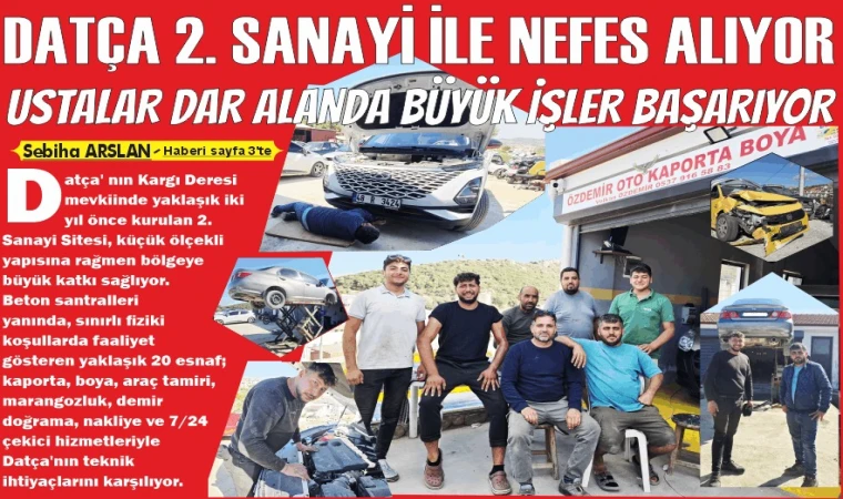 Sebiha ARSLAN: Datça’nın Kargı Deresi mevkiinde yaklaşık iki yıl önce kurulan 2. Sanayi Sitesi, küçük ölçekli yapısına rağmen bölgeye büyük katkı sağlıyor. Beton santralleri yanında, sınırlı fiziki koşullarda faaliyet gösteren yaklaşık 20 esnaf; kaporta, boya, araç tamiri, marangozluk, demir doğrama, nakliye ve 7/24 çekici hizmetleriyle Datça’nın teknik ihtiyaçlarını karşılıyor.