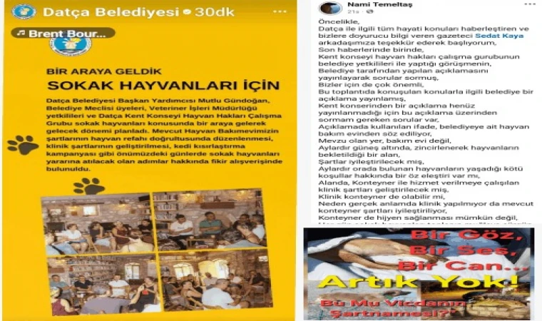Datça Hayvanları Sevenler Derneği barınak görevlisi Nami Temeltaş, toplantı sonrası sosyal medya üzerinden yaptığı açıklamada, belediyenin “hayvan bakım evi” olarak tanımladığı alanın gerçekte aylardır güneş altında zincirlenmiş hayvanların tutulduğu bir açık alan olduğunu belirtti. Temeltaş, “Bu alanın şartlarının iyileştirileceği belirtiliyor ama mevcut kötü koşullara dair hiçbir öz eleştiri yer almıyor” dedi.