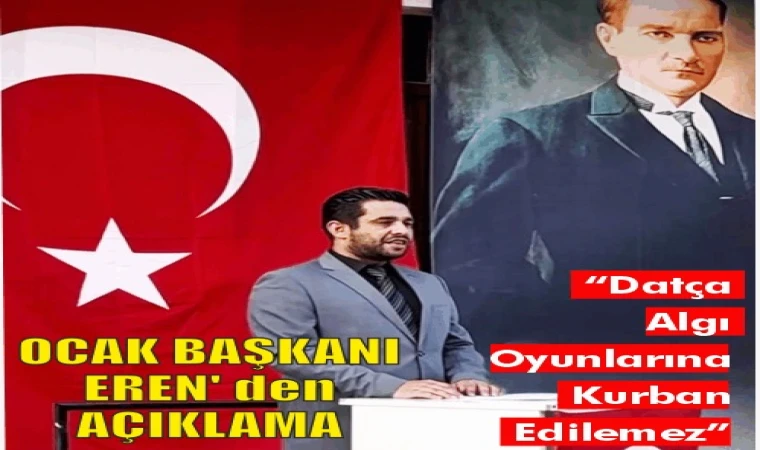 Sebiha ARSLAN : Datça Ülkü Ocakları Başkanı Ali Eren, son günlerde sosyal medyada Datça’yı hedef alan içeriklere sert tepki gösterdi. “Datça Turizmine Kim Balta Vurmak İstiyor?” başlığıyla yaptığı açıklamada, Datça’nın emeğine, doğasına ve turizmine zarar vermeye yönelik algı operasyonlarına karşı sessiz kalmayacaklarını vurguladı. Eren, söz konusu paylaşımların esprili ya da duyarlı gibi gösterilse de aslında Datça’nın itibarını zedelediğini belirterek, “Kimse Datça’nın adını, şerefini, emeğini sosyal medya maskaralıklarına alet edemez” dedi.