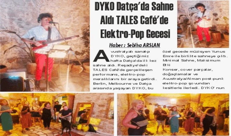 Sebiha ARSLAN : Avustralyalı sanatçı DYKO, geçtiğimiz hafta Datça’da ilk kez sahne aldı. Reşadiye’deki TALES Café’de gerçekleşen performans, elektro-pop meraklılarını bir araya getirdi. Berlin, Melbourne ve Datça arasında yaşayan DYKO, bu özel gecede müzisyen Yunus Emre ile birlikte sahneye çıktı.