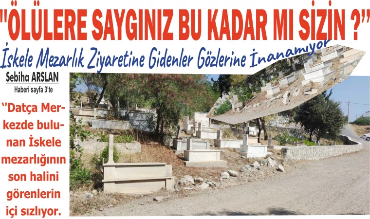 Geçtiğimiz yıllarda kenarlarına taş duvar yapılan ve bir kısmı yarıda bırakılan, İskele mezarlığındaki, bazı mezar ve taşlarının yola kayması, mahalle sakinleri ve mezarlığa giden vatandaşların canını acıtıyor. Gazetemize yapılan açıklamada ''Geçen yıl taş duvar yapılıp gördüğünüz gibi yarıda bırakıldı. Mezarlığın kenarındaki çöp konteynerinin etrafı çöp dolu, mezarlığın içerisi de aynı şekilde. Datça Belediyesini - yetkilileri defalarca aramamıza, bildirmemize rağmen değişen bir şey yok. Ama şu anki duruma, acil müdahale edilmesi lazım. Mezar taşlarında ve toprakta kaymalar var.Bir tane bile yetkili bu durumu görmüyor mu? Ölülerimize saygı duyulmasını istiyoruz’' denildi.