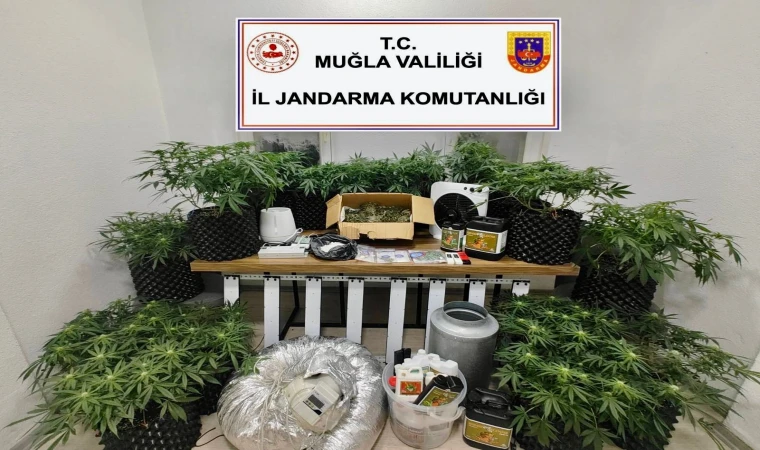 Bodrum ilçesi Gündoğan Mahallesi'nde gerçekleşen operasyonda, 1.050 gram kurutulmuş skunk, 1.100 gram likit esrar, 10 gram kokain, 20 kök skunk bitkisi, 65 parçadan oluşan iklimlendirme ve ışık sistemi ile 2 cep telefonu bulundu.