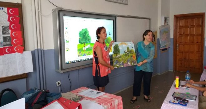 Sebiha ARSLAN :TEMA Vakfı Datça İlçe Sorumluluğu “Arılar Varsa Yarınlar Var” projesi kapsamında ilk eğitimini 15 Ekim Salı günü Kazım Yılmaz İlkokulunda gerçekleştirdi. Arıların, ekosistemin çeşitliliğine ve yaşamın sürdürülebilirliğine katkıları konusunda çocuklara dünyadaki bitkilerin yüzde 80'inin polenini doğaya dağıtarak, yaşamın çeşitliliğinde büyük bir görev üstlenen arıların yarınlarımız için önemi anlatıldı.