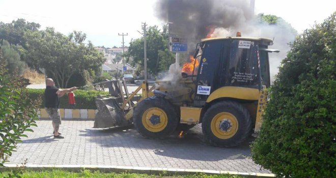 DATÇA DA SEYİR HALİNDEKİ İŞ MAKİNASI ALEV ALEV YANDI