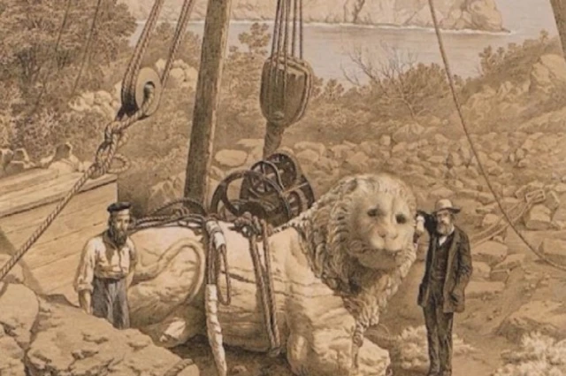 "...Bu harkulade Aslan heykelini bu ilkel topraklardan alıp ,uygarlığın ve insanlık mirasının koruyucusu saygıdeğer İngiltere Kraliçesinin topraklarına götürmenin gururunu yaşadım.."